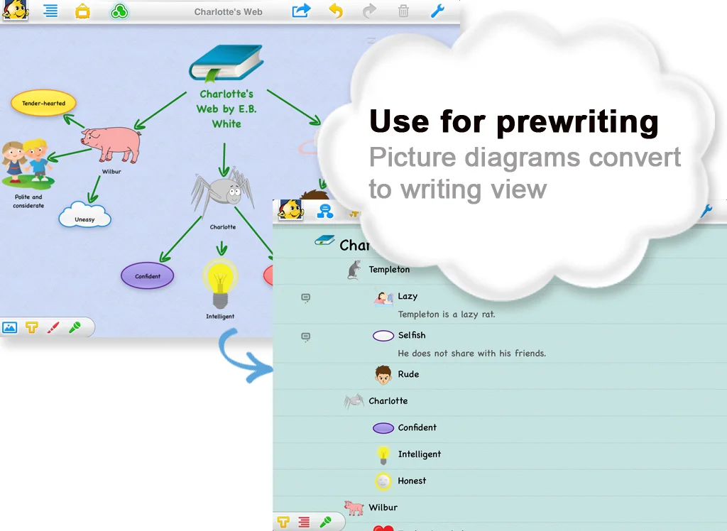 Kidspiration® Maps helps elementary age students build strong reading, writing and thinking skills on the iPad.